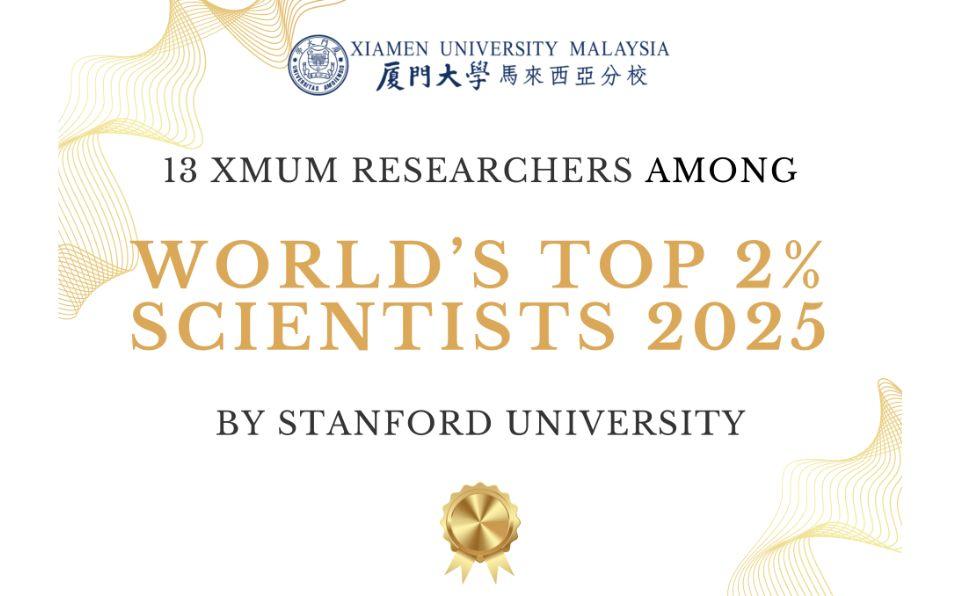 Xiamen University Malaysia (XMUM) celebrates the inclusion of 13 of its scientists in Stanford University’s prestigious World’s Top 2% Scientists List, released on 19 September 2025. This recognition, based on Scopus data as of 1 August 2025, highlights the significant impact of XMUM’s academic community.