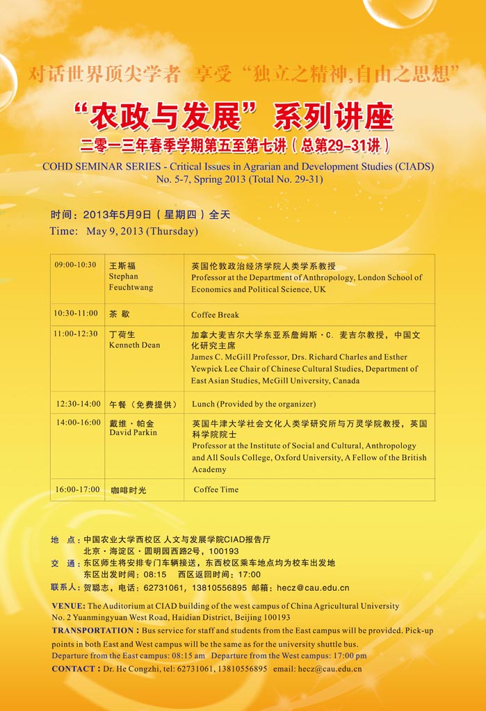 【农政与发展】系列讲座 2013年春季学期第5-7讲(总第29-31讲)